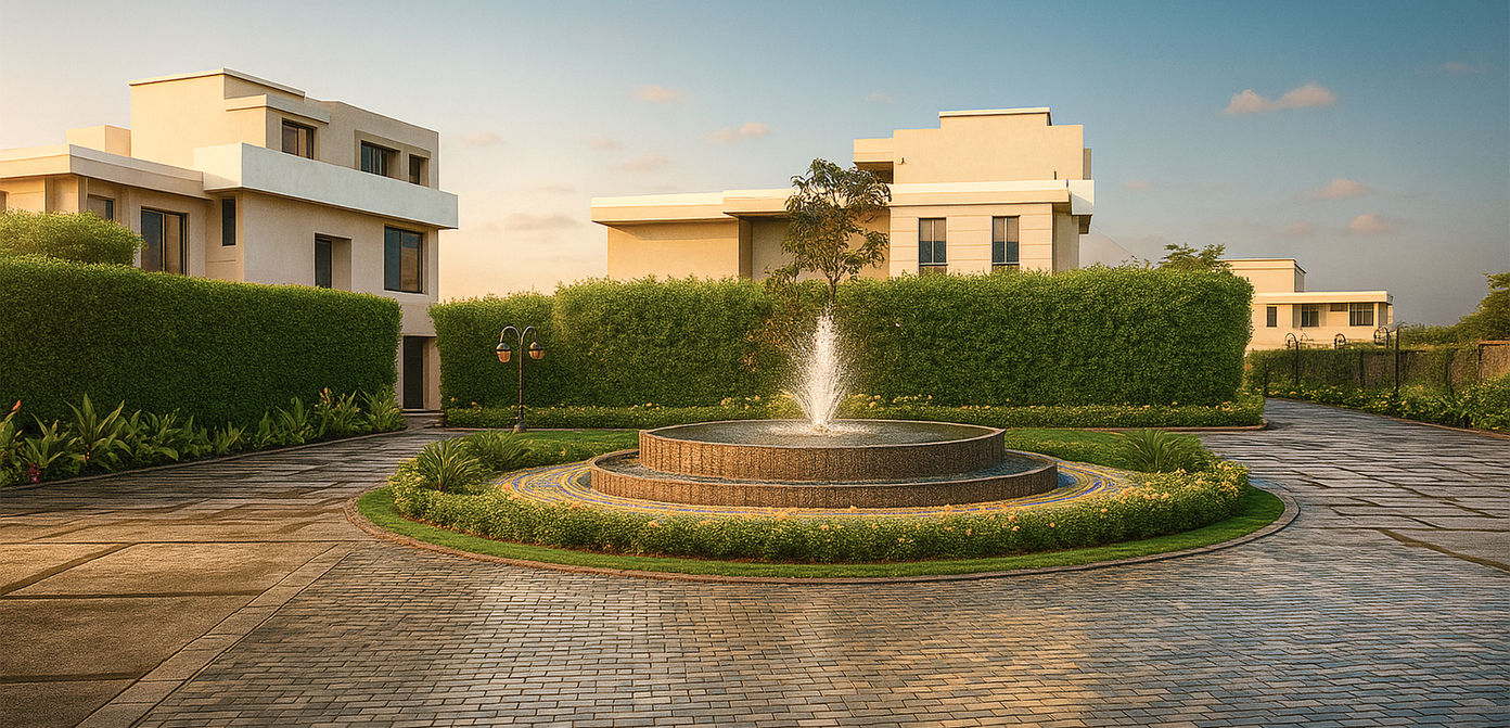 Experience elegance from the very first glance. Our signature villa enclave greets you with a majestic gateway, lush green vistas, and an ambience crafted for the truly distinguished